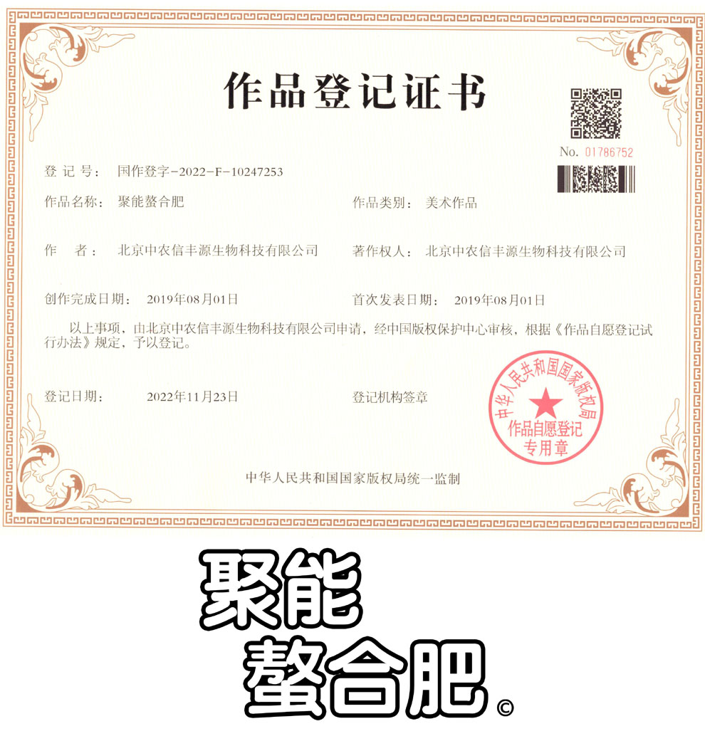 聚能螯合肥 作品登记证书